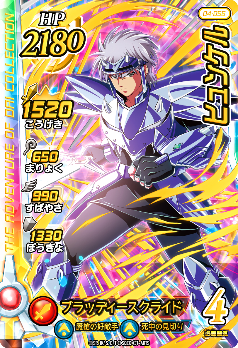 『クロスブレイド』4弾ではアニメでも強敵として立ちはだかる超竜軍団の軍団長「バラン」が登場します。さらに竜騎衆「ラーハルト」「ボラホーン」「ガルダンディー」や新武装の「ヒュンケル」が参戦。現在稼動中の3弾に引き続き、4弾もギンギラギンに光り輝く豪華なカードとなっています。