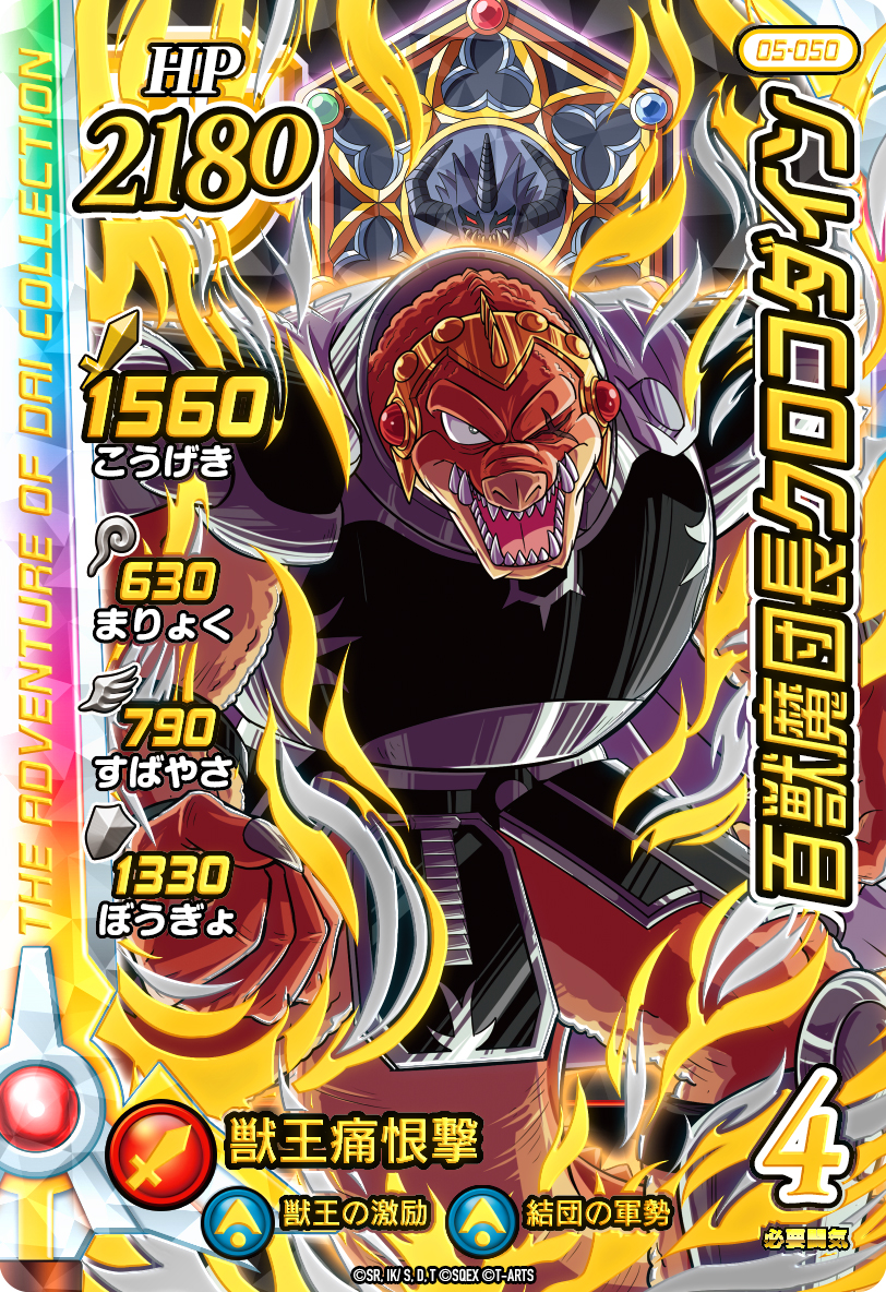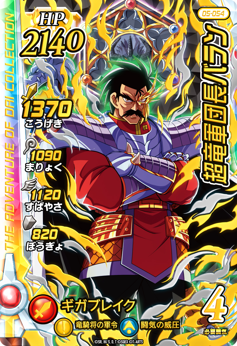 『クロスブレイド』5弾のドラゴンレアカードには、今回「ミストバーン」が『クロスブレイド』に初登場したことで、魔王軍の六大軍団長全員がドラゴンレアカードにラインアップ。六大軍団長のカードはすべて邪悪の六星を背景に背負い、キャラクター名にそれぞれの軍団名を冠した特別なカードデザインとなっています。 また、新装備となった「ダイ」と武闘家「マァム」が参戦します。